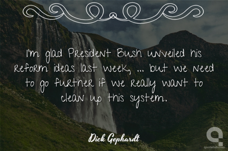 I'm glad President Bush unveiled his reform ideas last week, ... but we need to go further if we really want to clean up this system.