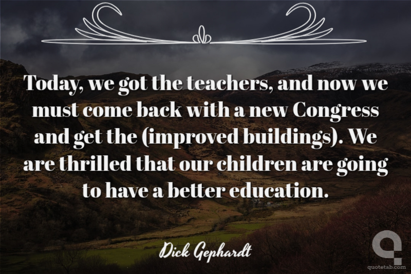 Today, we got the teachers, and now we must come back with a new Congress and get the (improved buildings). We are thrilled that our children are going to have a better education.