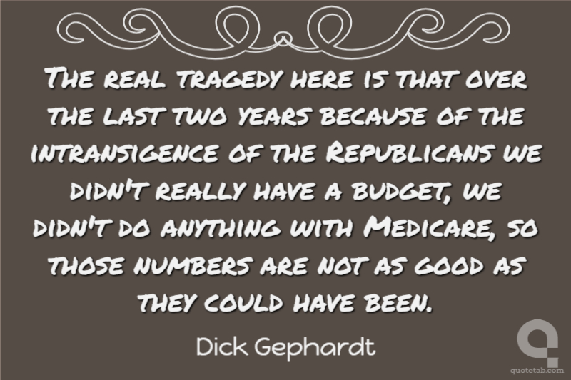 The real tragedy here is that over the last two years because of the intransigence of the Republicans we didn't really have a budget, we didn't do anything with Medicare, so those numbers are not as good as they could have been.