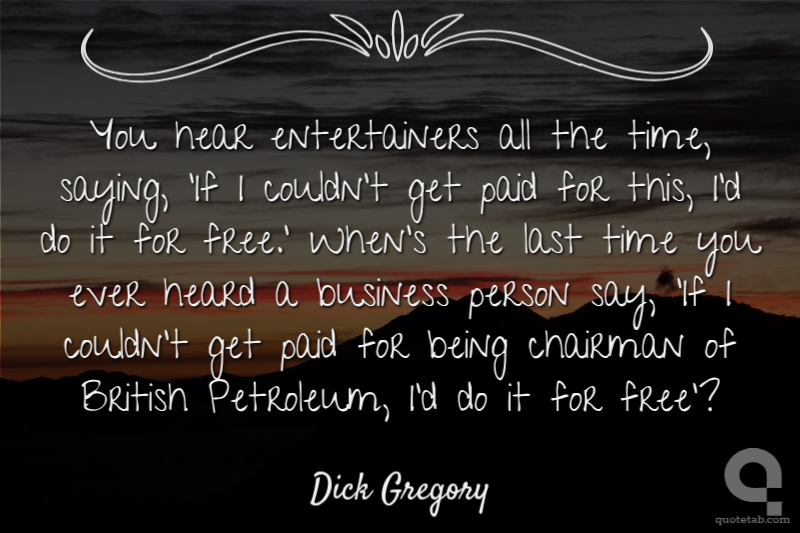 You hear entertainers all the time, saying, 'If I couldn't get paid for this, I'd do it for free.' When's the last time you ever heard a business person say, 'If I couldn't get paid for being chairman of British Petroleum, I'd do it for free'?