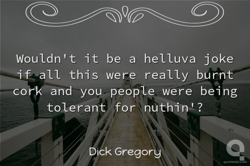 Wouldn't it be a helluva joke if all this were really burnt cork and you people were being tolerant for nuthin'?