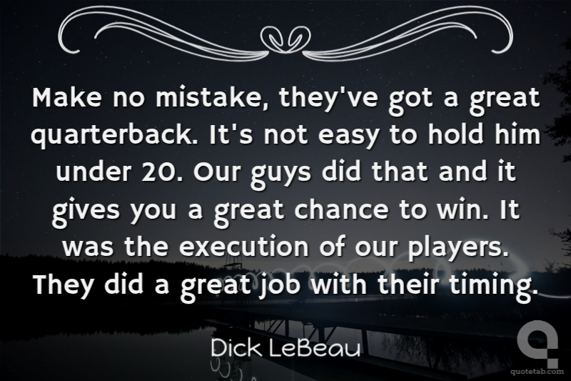 Make no mistake, they've got a great quarterback. It's not easy to hold him under 20. Our guys did that and it gives you a great chance to win. It was the execution of our players. They did a great job with their timing.