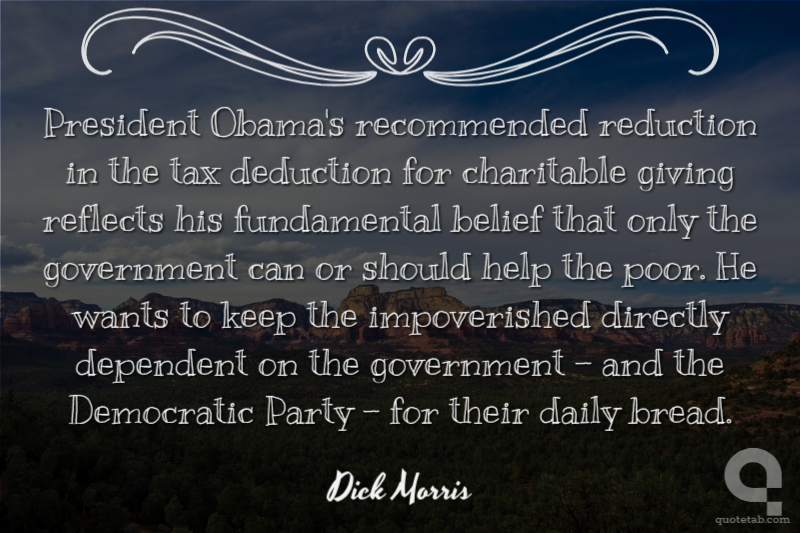 President Obama's recommended reduction in the tax deduction for charitable giving reflects his fundamental belief that only the government can or should help the poor. He wants to keep the impoverished directly dependent on the government - and the Democratic Party - for their daily bread.