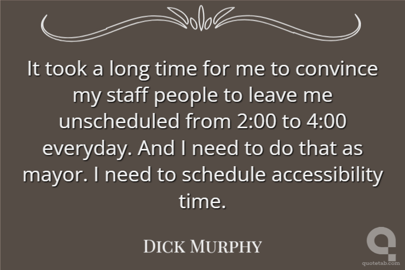 It took a long time for me to convince my staff people to leave me unscheduled from 2:00 to 4:00 everyday. And I need to do that as mayor. I need to schedule accessibility time.