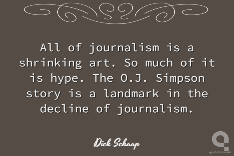 All of journalism is a shrinking art, ... So much of it is hype. The O.J. Simpson story is a landmark in the decline of journalism.