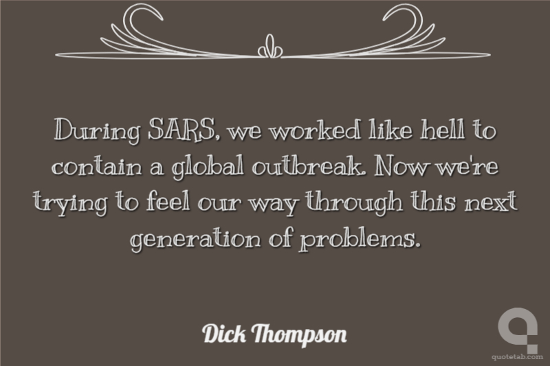 During SARS, we worked like hell to contain a global outbreak. Now we're trying to feel our way through this next generation of problems.