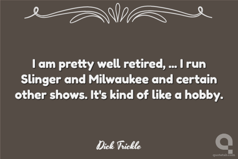 I am pretty well retired, ... I run Slinger and Milwaukee and certain other shows. It's kind of like a hobby.