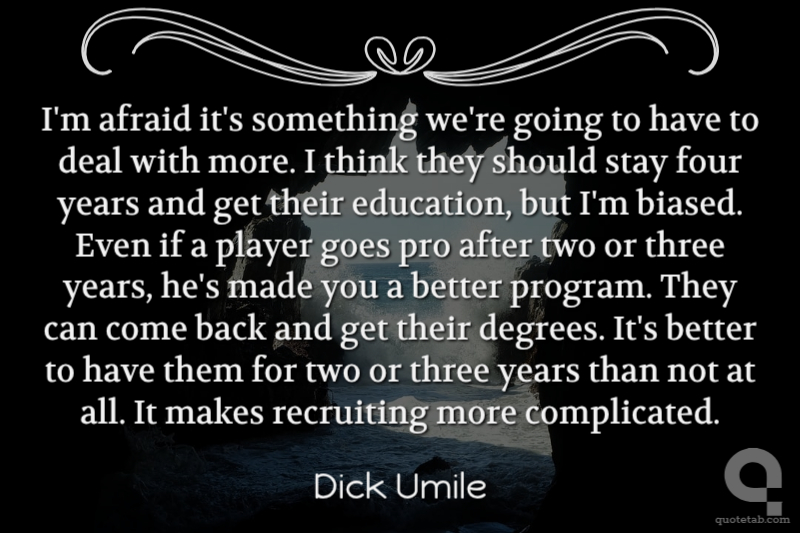 I'm afraid it's something we're going to have to deal with more. I think they should stay four years and get their education, but I'm biased. Even if a player goes pro after two or three years, he's made you a better program. They can come back and get their degrees. It's better to have them for two or three years than not at all. It makes recruiting more complicated.
