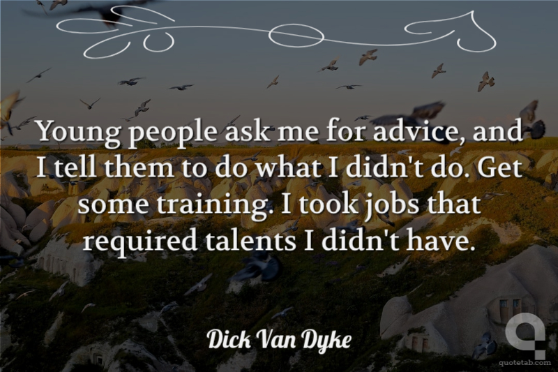 Young people ask me for advice, and I tell them to do what I didn't do. Get some training. I took jobs that required talents I didn't have.
