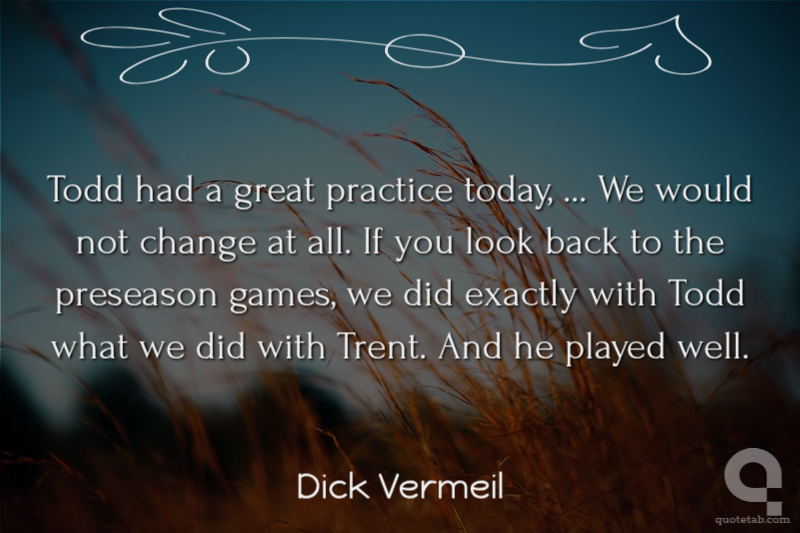 Todd had a great practice today. We would not change at all. If you look back to the preseason games, we did exactly with Todd what we did with Trent. And he played well.