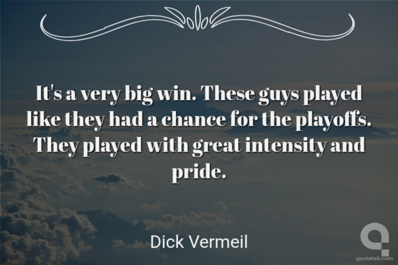 It's a very big win. These guys played like they had a chance for the playoffs. They played with great intensity and pride.