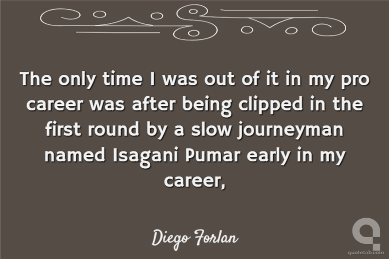 The only time I was out of it in my pro career was after being clipped in the first round by a slow journeyman named Isagani Pumar early in my career,