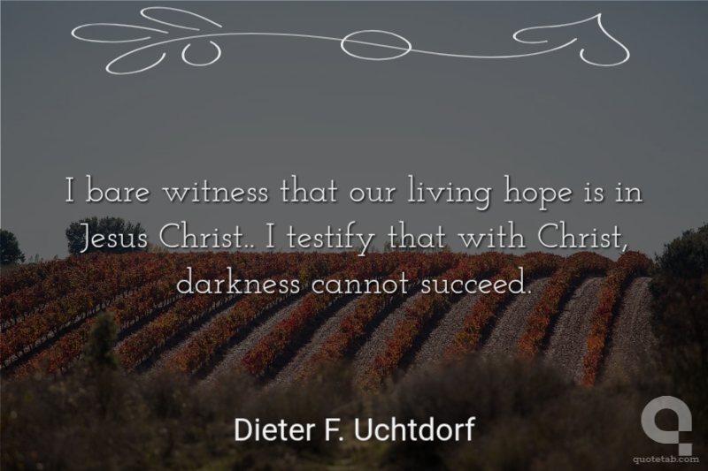 I bare witness that our living hope is in Jesus Christ.. I testify that with Christ, darkness cannot succeed.