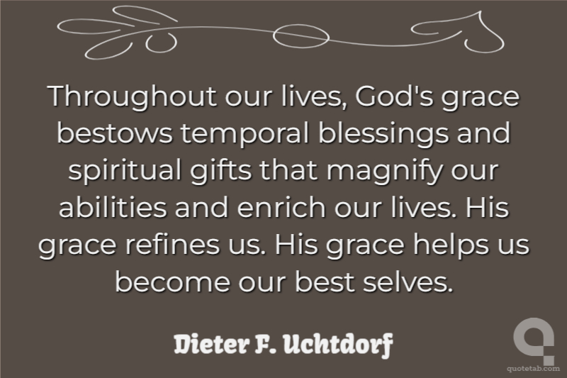 Throughout our lives, God's grace bestows temporal blessings and spiritual gifts that magnify our abilities and enrich our lives. His grace refines us. His grace helps us become our best selves.