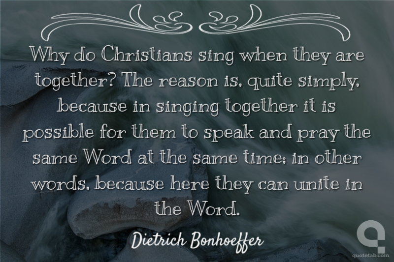 Why do Christians sing when they are together? The reason is, quite simply, because in singing together it is possible for them to speak and pray the same Word at the same time; in other words, because here they can unite in the Word.