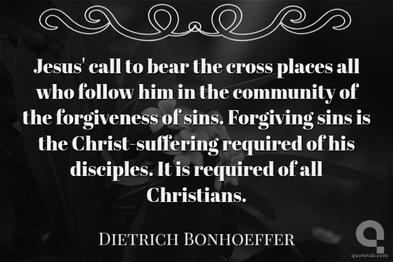 Jesus' call to bear the cross places all who follow him in the community of the forgiveness of sins. Forgiving sins is the Christ-suffering required of his disciples. It is required of all Christians.