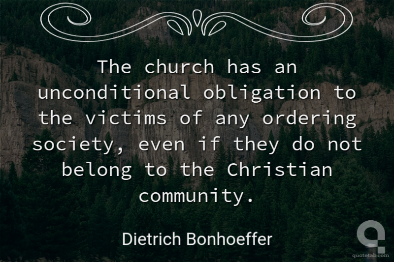 The church has an unconditional obligation to the victims of any ordering society, even if they do not belong to the Christian community.