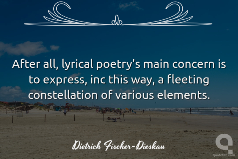 After all, lyrical poetry's main concern is to express, inc this way, a fleeting constellation of various elements.