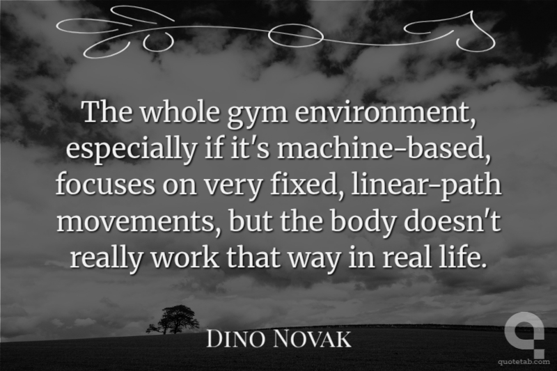 The whole gym environment, especially if it's machine-based, focuses on very fixed, linear-path movements, but the body doesn't really work that way in real life.