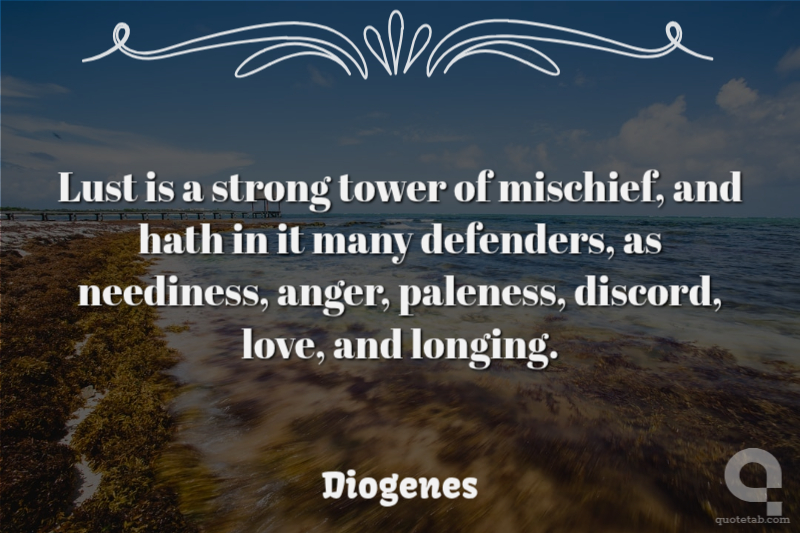 Lust is a strong tower of mischief, and hath in it many defenders, as neediness, anger, paleness, discord, love, and longing.