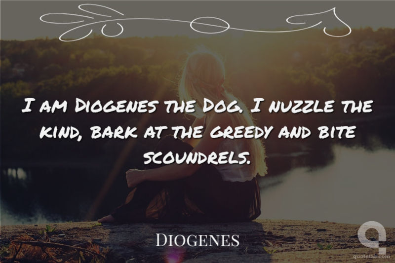 I am Diogenes the Dog. I nuzzle the kind, bark at the greedy and bite scoundrels.