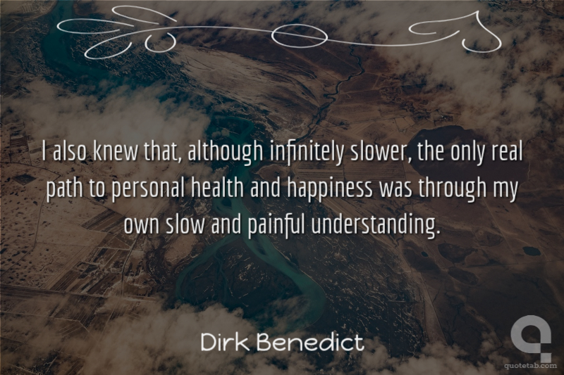 I also knew that, although infinitely slower, the only real path to personal health and happiness was through my own slow and painful understanding.