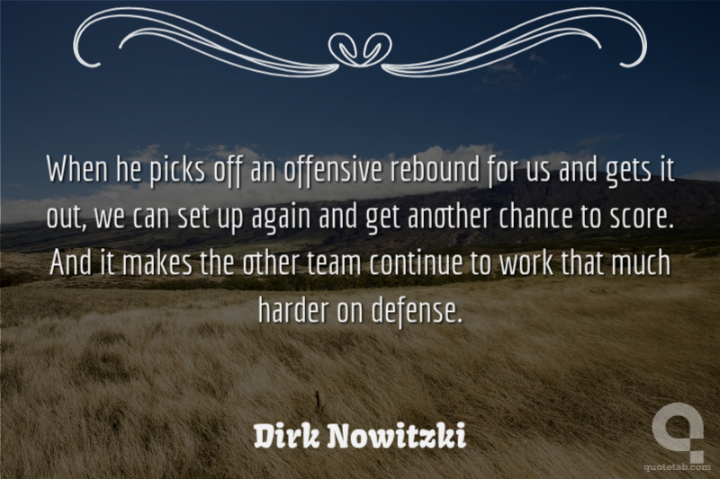 When he picks off an offensive rebound for us and gets it out, we can set up again and get another chance to score. And it makes the other team continue to work that much harder on defense.