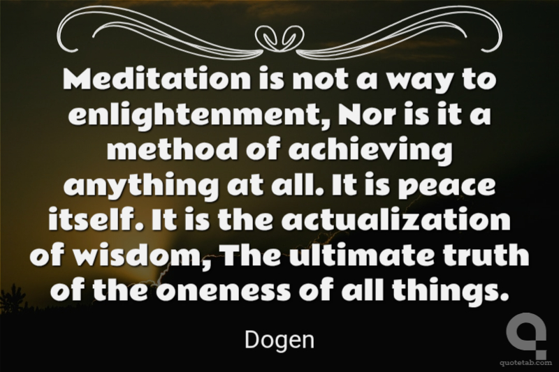 Meditation is not a way to enlightenment, Nor is it a method of achieving anything at all. It is peace itself. It is the actualization of wisdom, The ultimate truth of the oneness of all things.