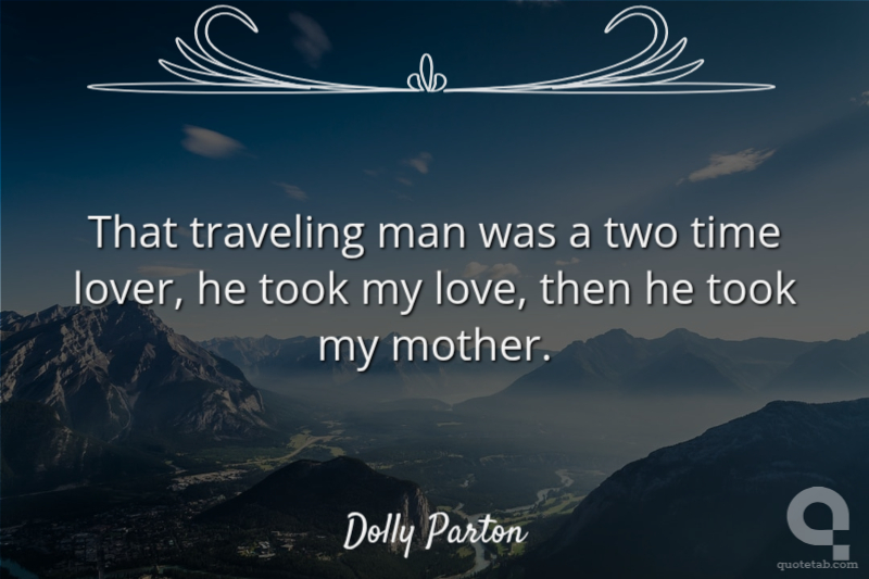 That traveling man was a two time lover, he took my love, then he took my mother.