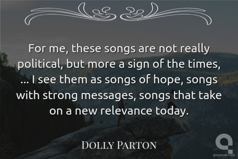 For me, these songs are not really political, but more a sign of the times, ... I see them as songs of hope, songs with strong messages, songs that take on a new relevance today.