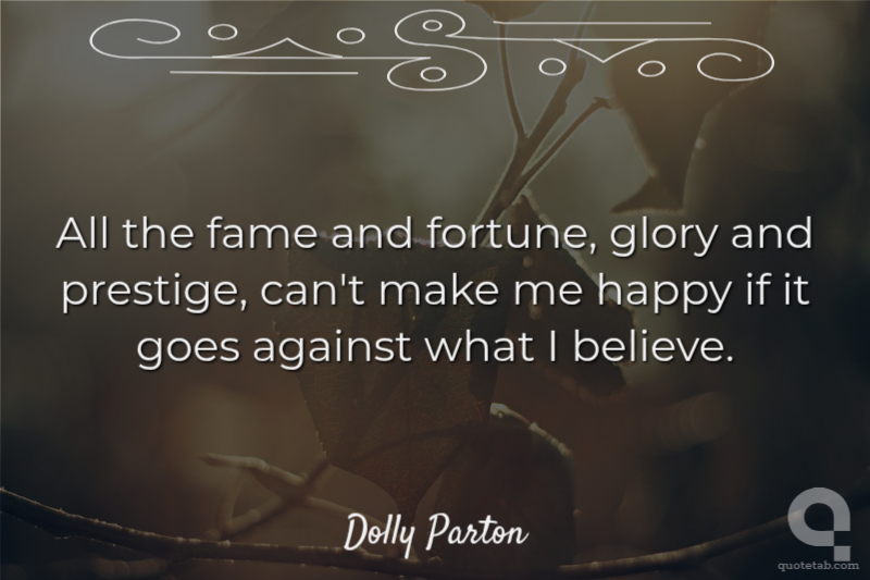 All the fame and fortune, glory and prestige, can't make me happy if it goes against what I believe.