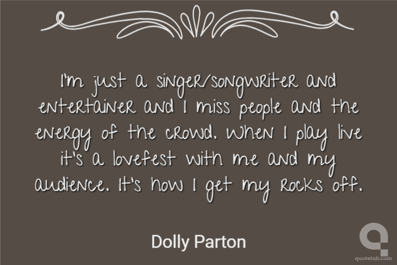 I'm just a singer/songwriter and entertainer and I miss people and the energy of the crowd. When I play live it's a lovefest with me and my audience. It's how I get my rocks off.