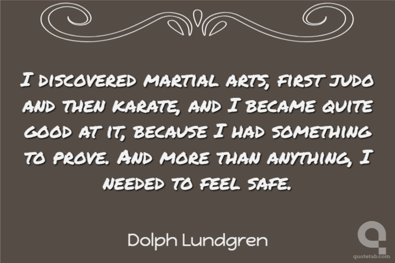 I discovered martial arts, first judo and then karate, and I became quite good at it, because I had something to prove. And more than anything, I needed to feel safe.