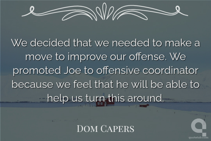 We decided that we needed to make a move to improve our offense. We promoted Joe to offensive coordinator because we feel that he will be able to help us turn this around.