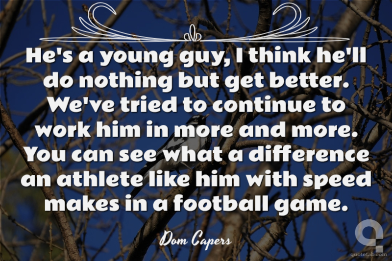 He's a young guy, I think he'll do nothing but get better. We've tried to continue to work him in more and more. You can see what a difference an athlete like him with speed makes in a football game.