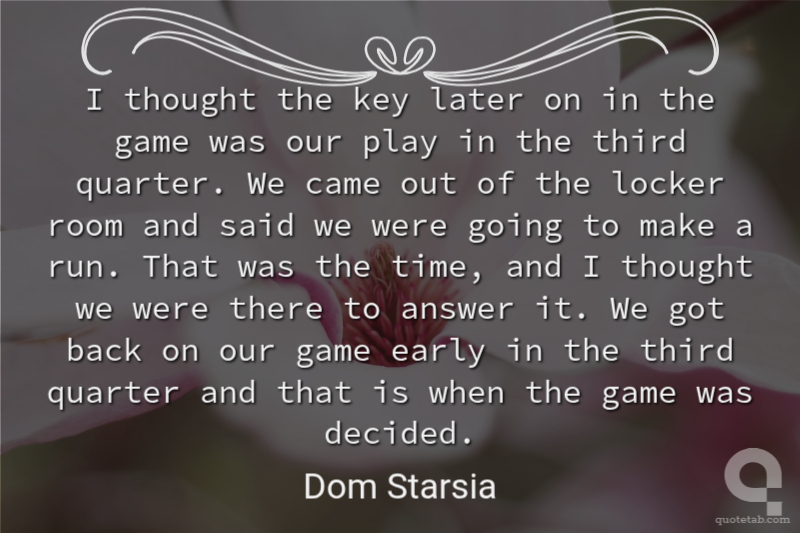 I thought the key later on in the game was our play in the third quarter. We came out of the locker room and said we were going to make a run. That was the time, and I thought we were there to answer it. We got back on our game early in the third quarter and that is when the game was decided.
