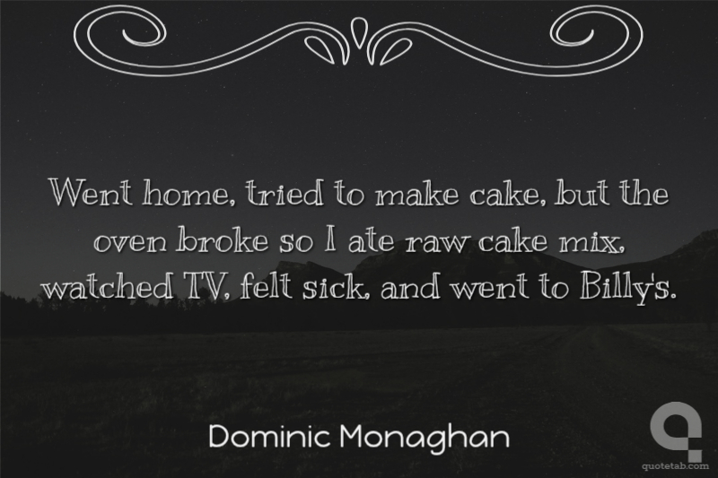 Went home, tried to make cake, but the oven broke so I ate raw cake mix, watched TV, felt sick, and went to Billy's.