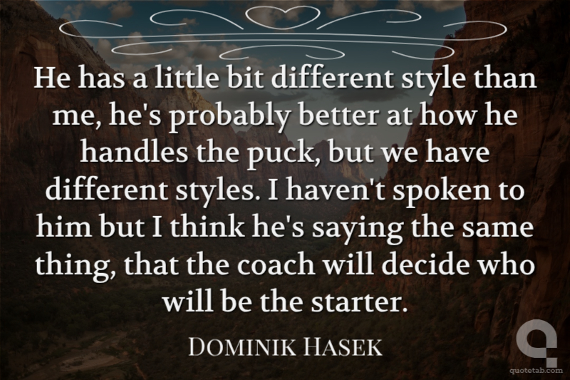 He has a little bit different style than me, he's probably better at how he handles the puck, but we have different styles. I haven't spoken to him but I think he's saying the same thing, that the coach will decide who will be the starter.