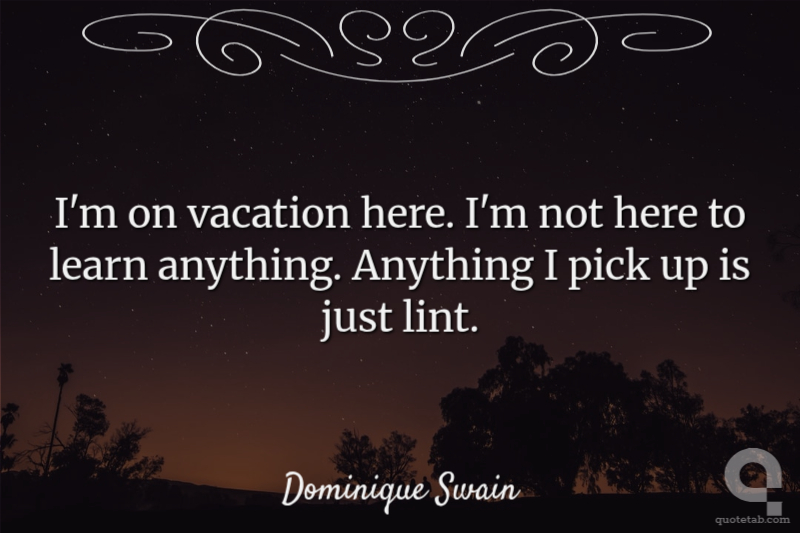 I'm on vacation here. I'm not here to learn anything. Anything I pick up is just lint.