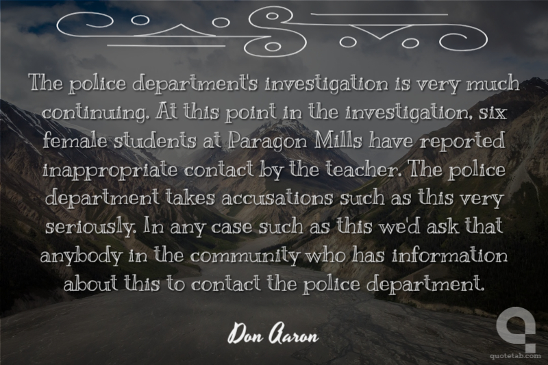 The police department's investigation is very much continuing. At this point in the investigation, six female students at Paragon Mills have reported inappropriate contact by the teacher. The police department takes accusations such as this very seriously. In any case such as this we'd ask that anybody in the community who has information about this to contact the police department.