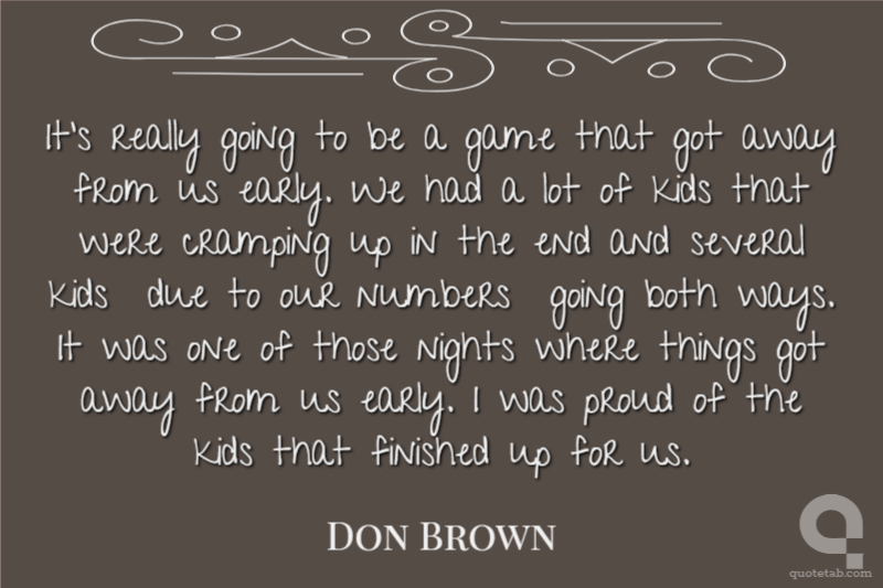 It's really going to be a game that got away from us early. We had a lot of kids that were cramping up in the end and several kids due to our numbers going both ways. It was one of those nights where things got away from us early. I was proud of the kids that finished up for us.