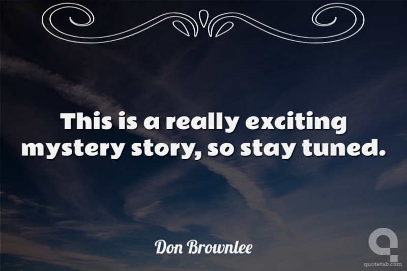 Our mission is called Stardust, in part because we believe some of the particles in the comet will, in fact, be older than the sun.