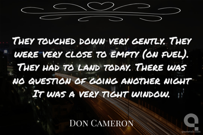 They touched down very gently. They were very close to empty (on fuel). They had to land today. There was no question of going another night It was a very tight window.