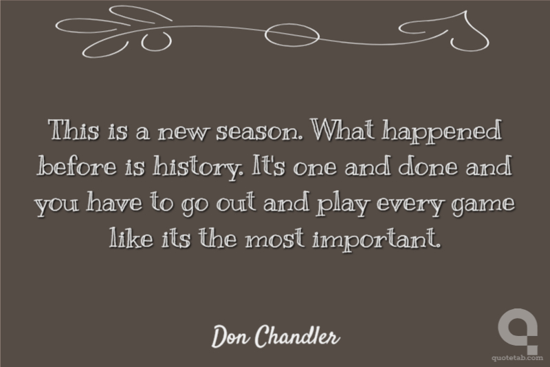 This is a new season. What happened before is history. It's one and done and you have to go out and play every game like its the most important.
