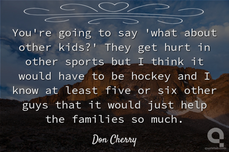 You're going to say 'what about other kids?' They get hurt in other sports but I think it would have to be hockey and I know at least five or six other guys that it would just help the families so much.