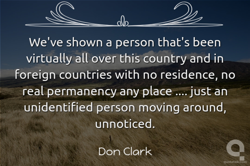 We've shown a person that's been virtually all over this country and in foreign countries with no residence, no real permanency any place .... just an unidentified person moving around, unnoticed.