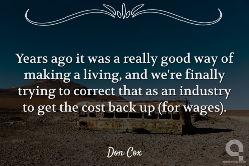 Years ago it was a really good way of making a living, and we're finally trying to correct that as an industry to get the cost back up (for wages).