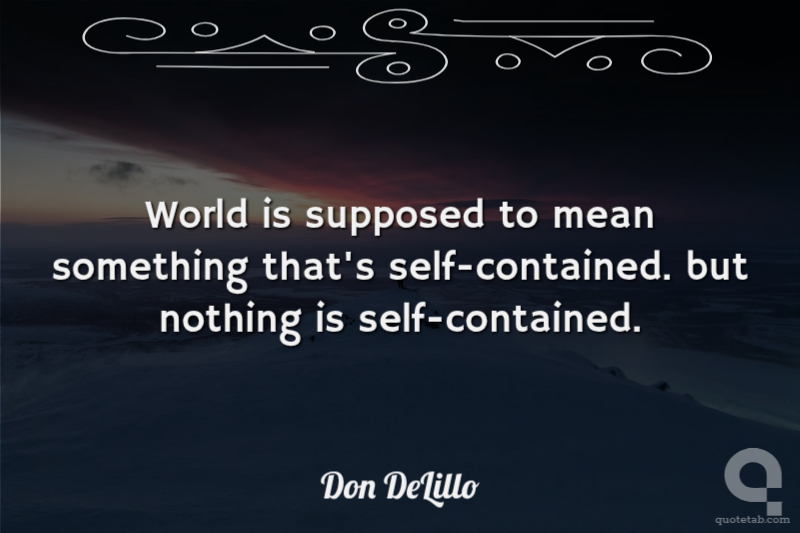 World is supposed to mean something that's self-contained. but nothing is self-contained.