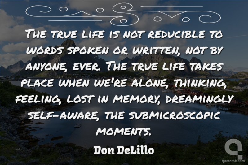 The true life is not reducible to words spoken or written, not by anyone, ever. The true life takes place when we're alone, thinking, feeling, lost in memory, dreamingly self-aware, the submicroscopic moments.