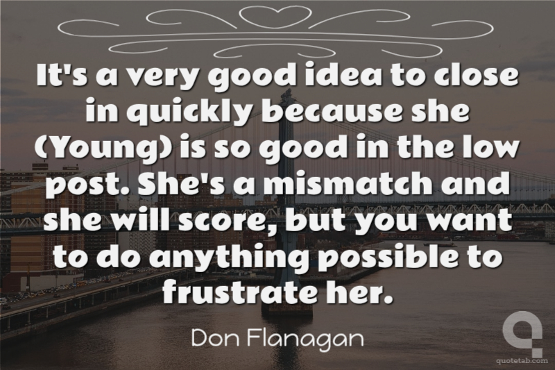 It's a very good idea to close in quickly because she (Young) is so good in the low post. She's a mismatch and she will score, but you want to do anything possible to frustrate her.